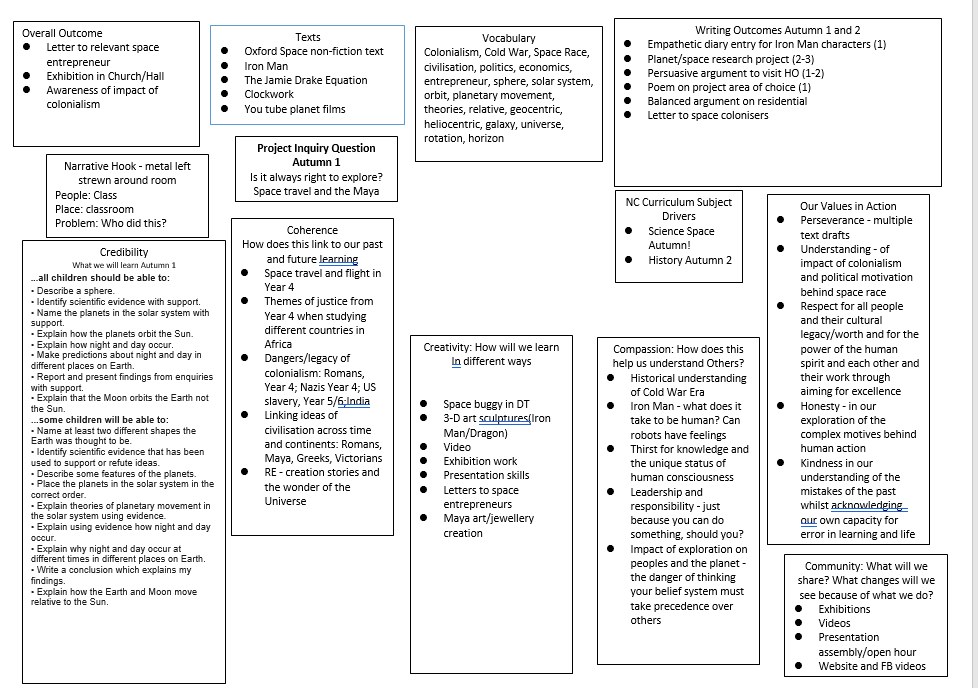 This term we will be learning about Space and the Solar System. We will then look at the Maya Civilisation and assess the effects of colonisation. We will then produce work that reflects on our impact on others and -potentially- the wider universe.